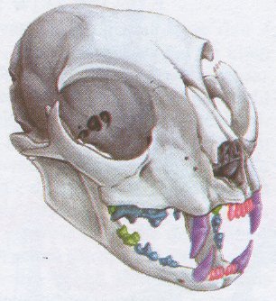 Het melkgebit van de kat bestaat uit 26 tanden (14 in de bovenkaak en 12 in de