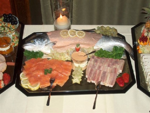 2) Visbuffet: Ook hiervoor ga je naar de visboer, je legt de vis op een schaal, op de foto is dit netjes gedaan, maar dat is niet noodzakelijk.